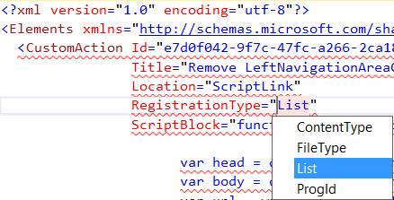Description CustomAction definition has RegistrationType attribute. It should contain one of the predefined string constant. reSP allows you to select value from the drop-down list. Just use Ctrl+Space shortcut. Links CustomAction Element RegistrationType & RegistrationId in SharePoint 2010 declarative Ribbon customizations